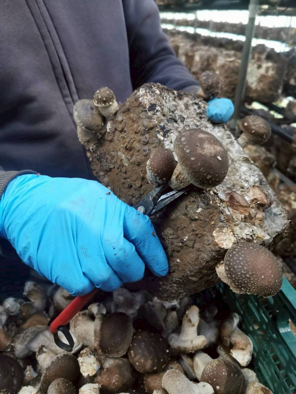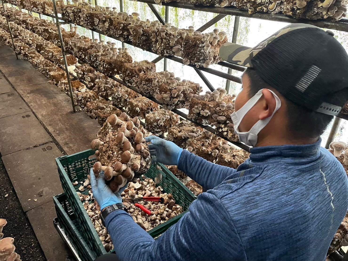 椎茸菌床を仕込んでから収穫まで100日以上かけ、最初に出る椎茸の芽も、人の手で良いものだけに選別していきます。