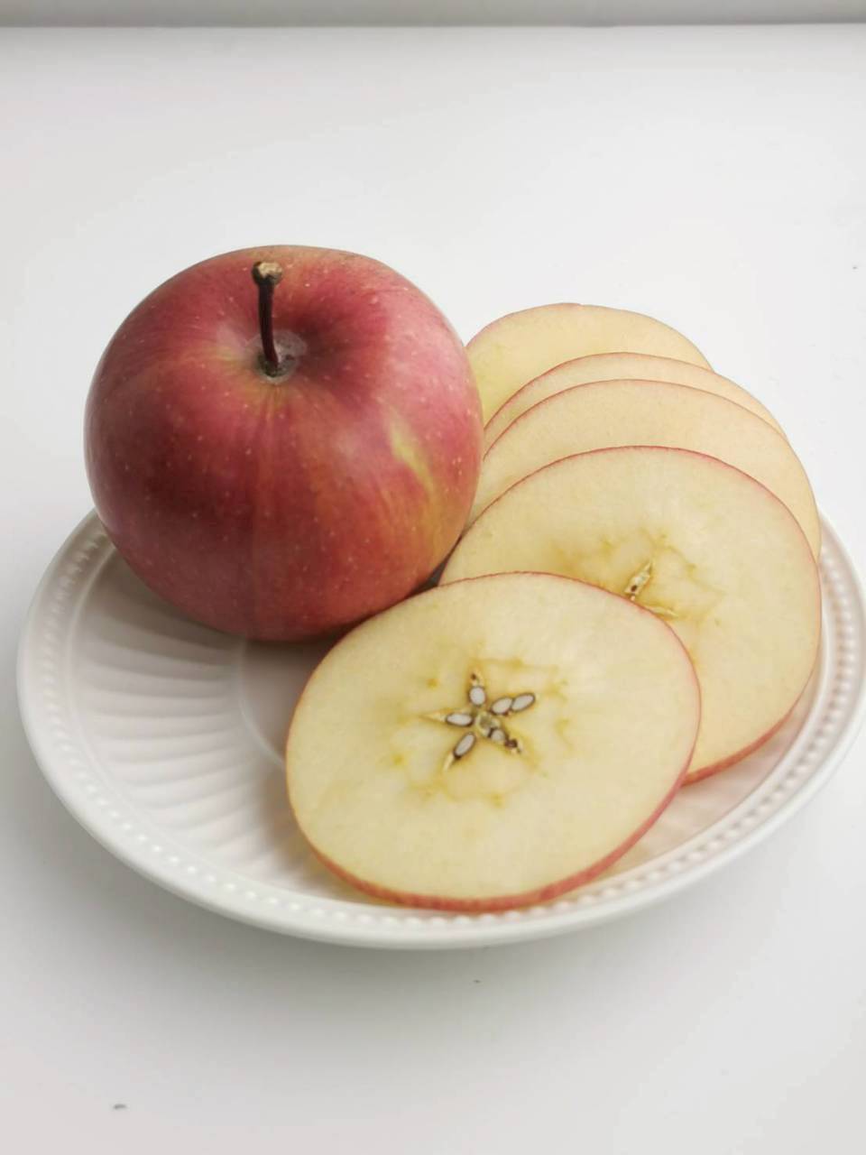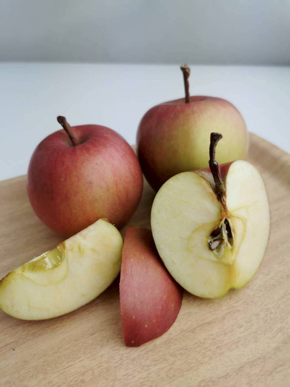 特徴としてりんごの表面が真っ赤ではなく、少し緑がかった色ムラが出ます。