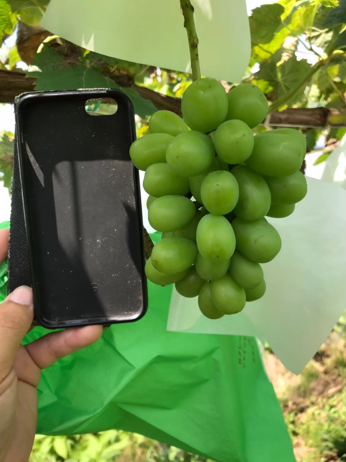 その後、日焼けしないよう袋に包み収穫まで毎日、病害虫などの異常がないか見回りを行います。