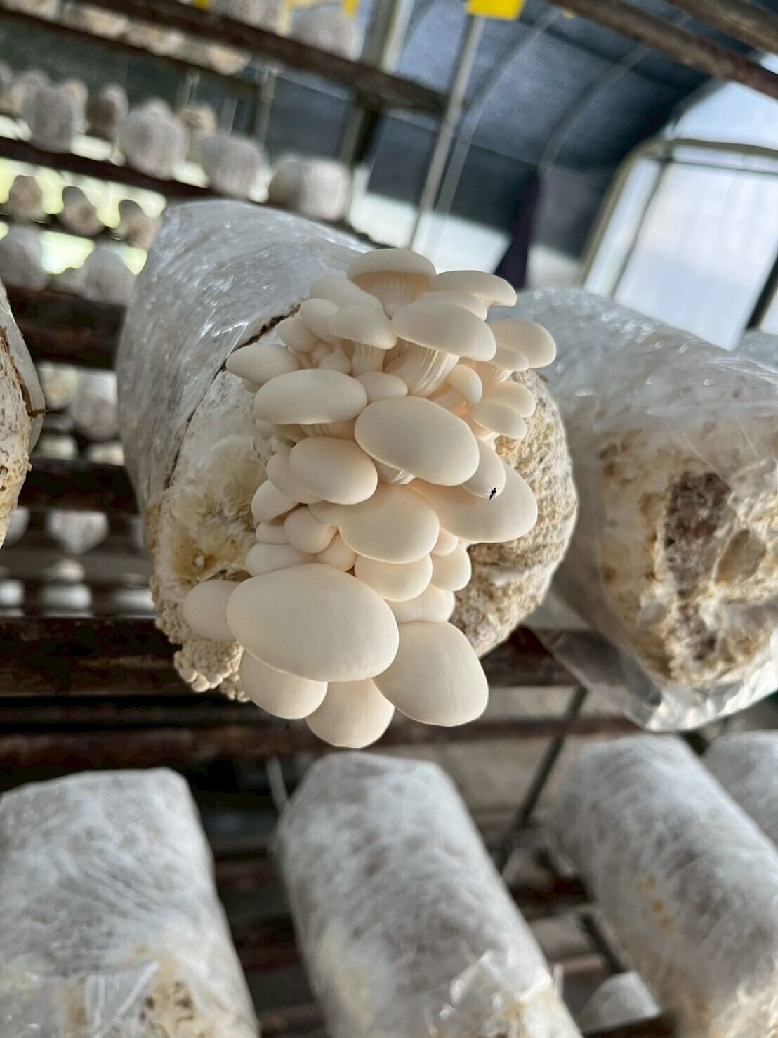 ヒラタケの純白種、白ひらたけをお試し用に少量梱包した商品です。